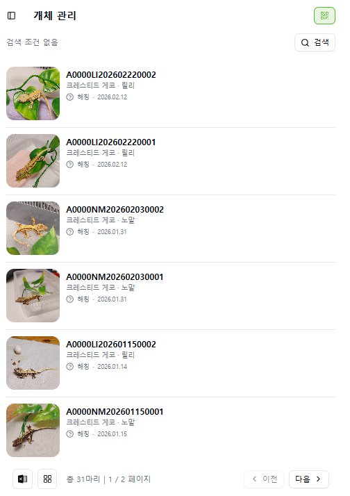 브리딩 개체 등록 신청해 주세요!